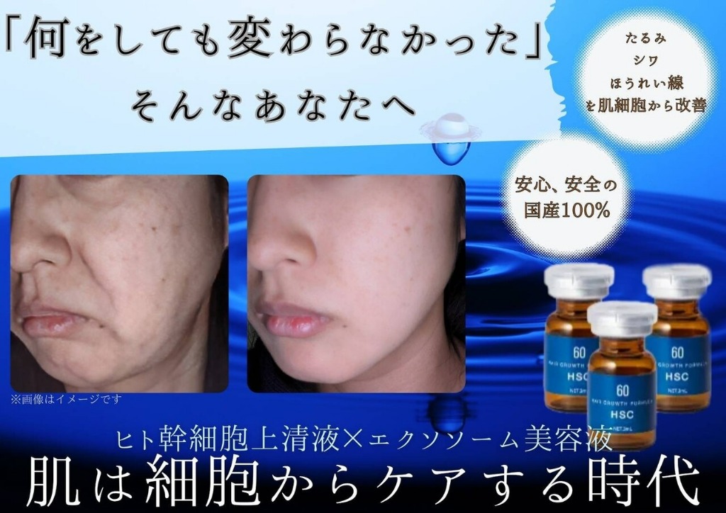 年齢と共に衰える肌修正。早く改善するから出会える自分のつるんとむけたたまご肌<幹細胞導入・濃度60%>あの時のお肌を取り戻しませんか?